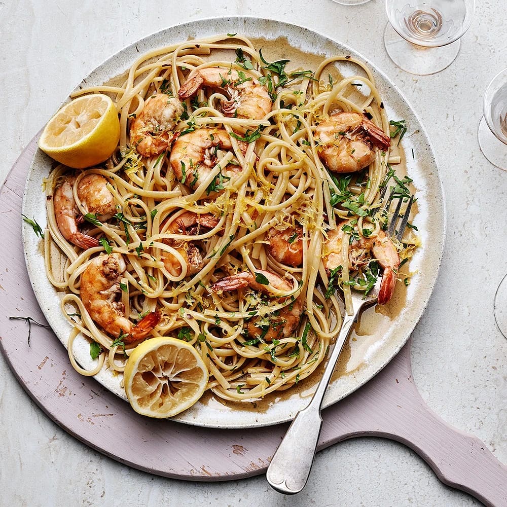 Citronpasta med vannameiräkor