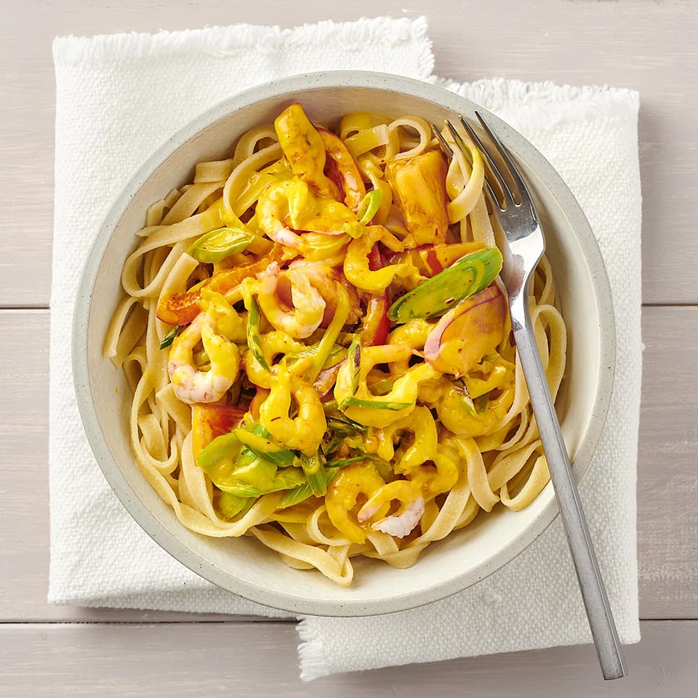 Saffranspasta med räkor