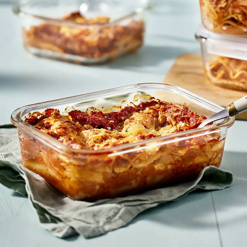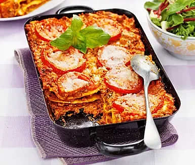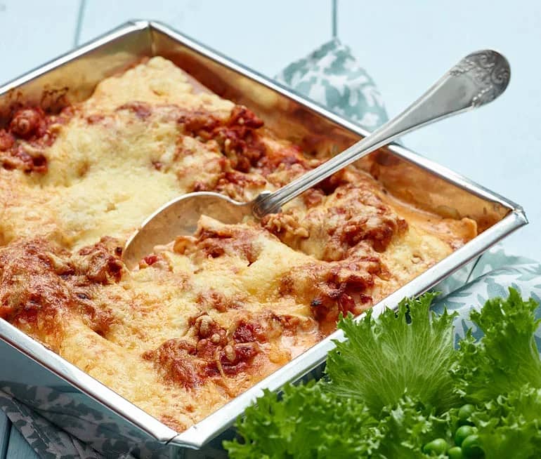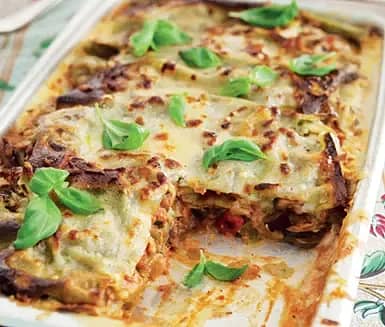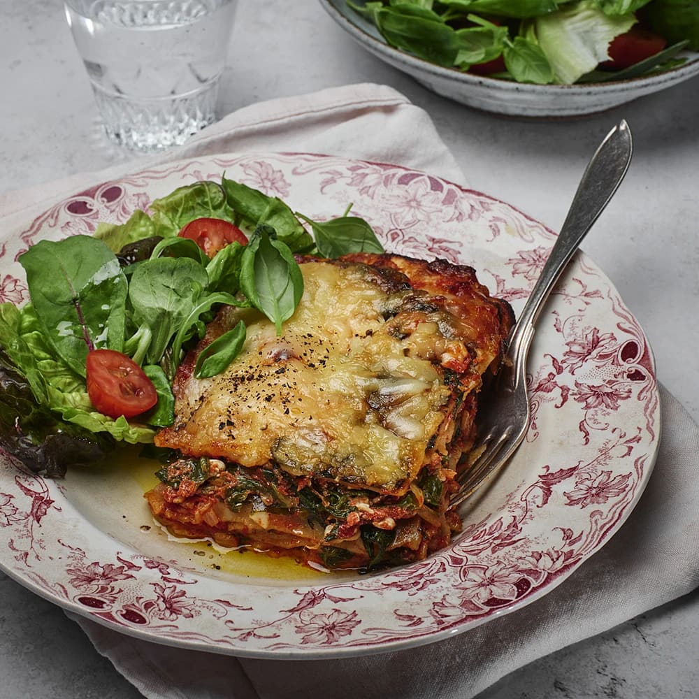 Lasagne med chorizo, rostade grönsaker och parmesansås