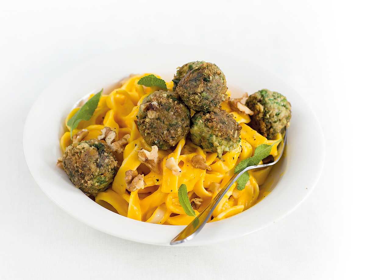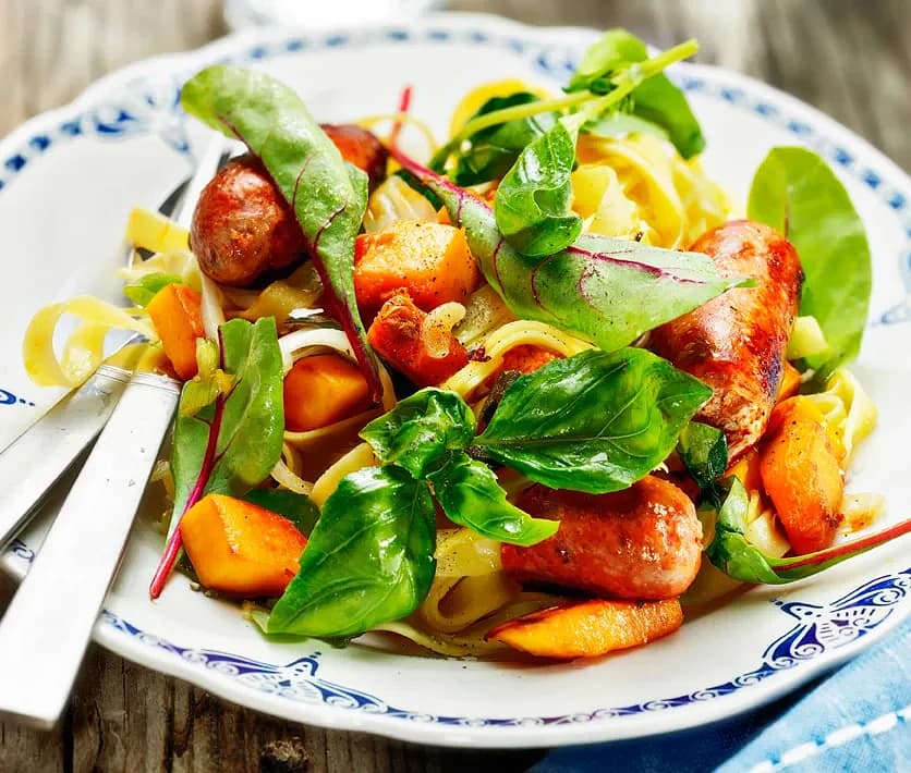 Apelsin- och basilikamarinerad morots- och zucchinipasta