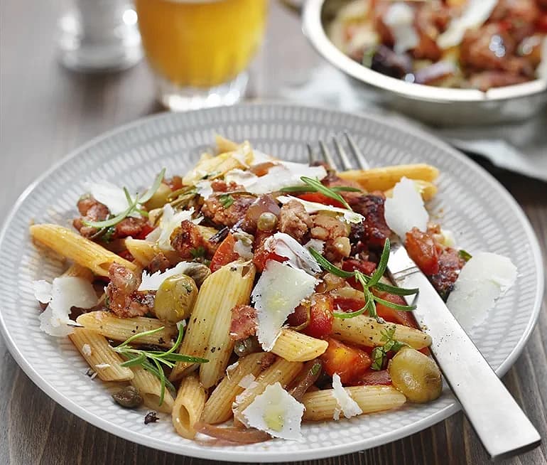 Penne med oliver och salsiccia