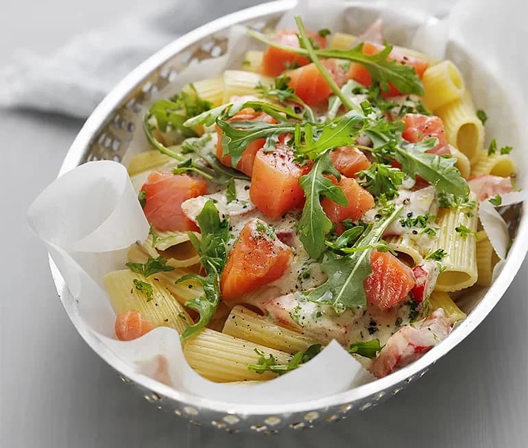 Krämig lax- och ruccolapasta