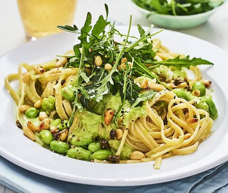 Krämig grönärtspasta med kaprisfräs