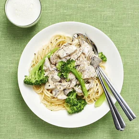 Pasta med svampsås och broccoli