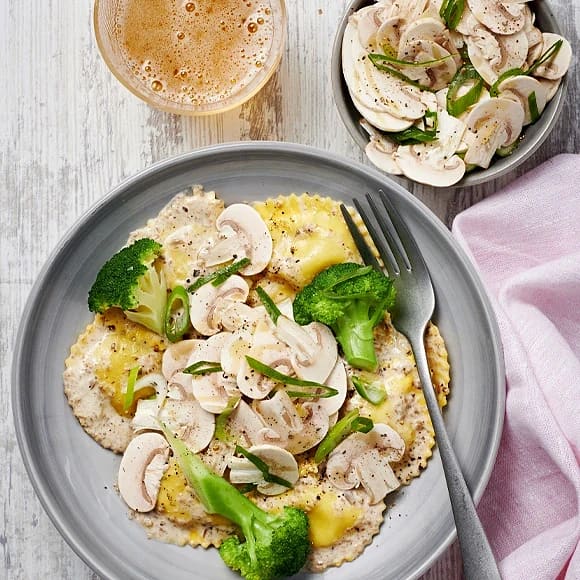 Tryffeldoftande triangoli med champinjonsallad