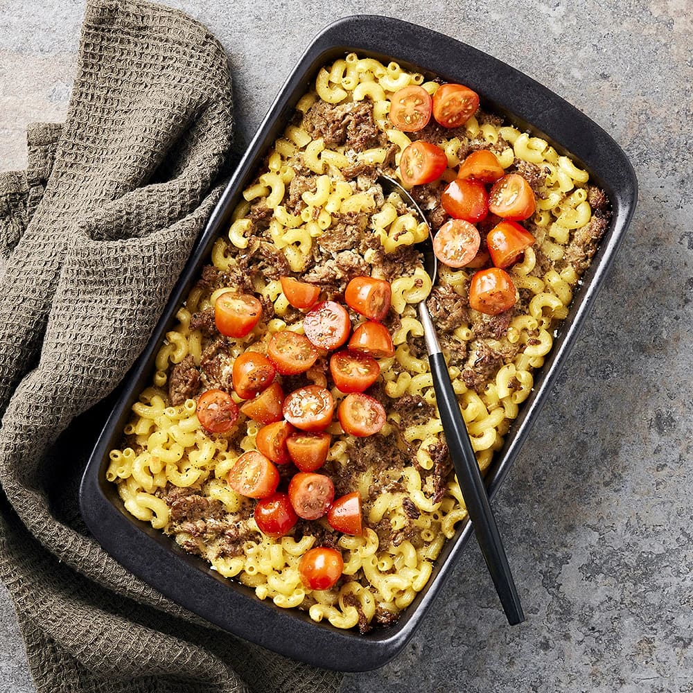 Gräddig pastalåda med kryddig färs