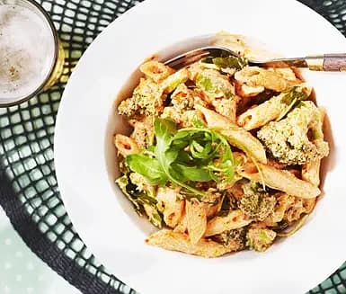 Pasta med broccoli och arrabbiatakräm