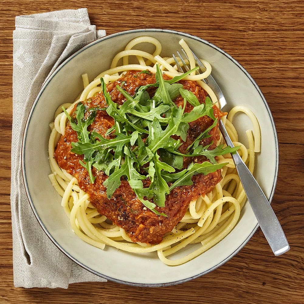 Bucatini med vegobolognese