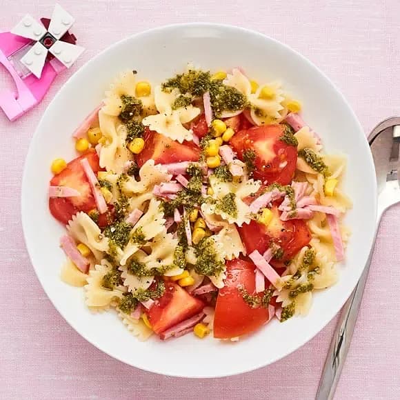 Pastasallad med majs och rökt skinka