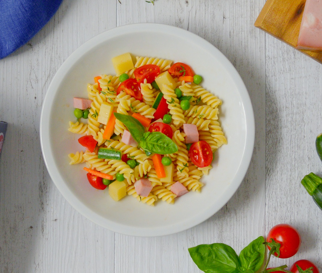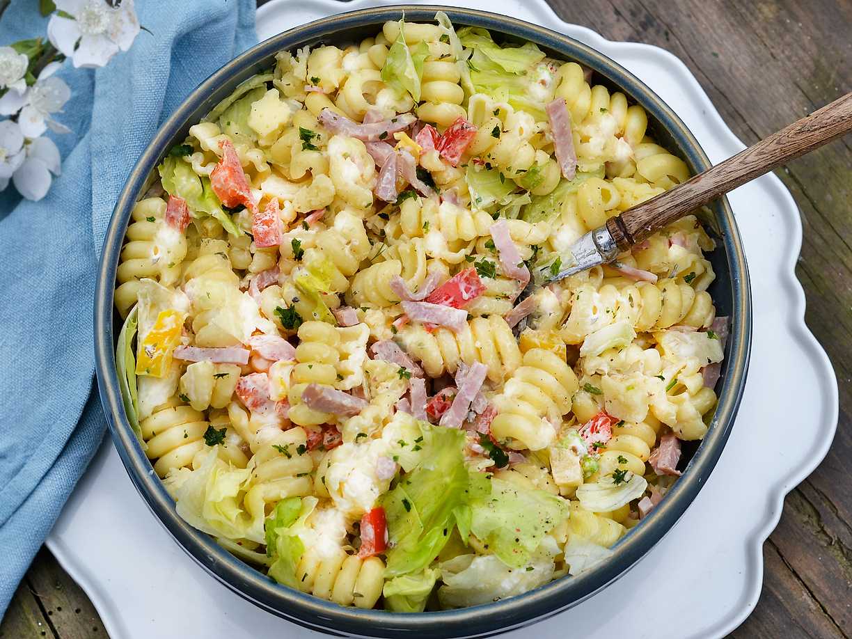 Pastasallad med skinka och ärtor