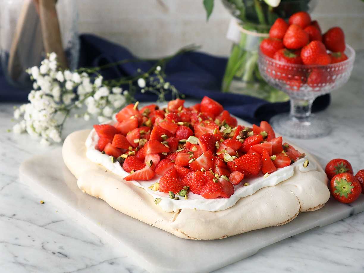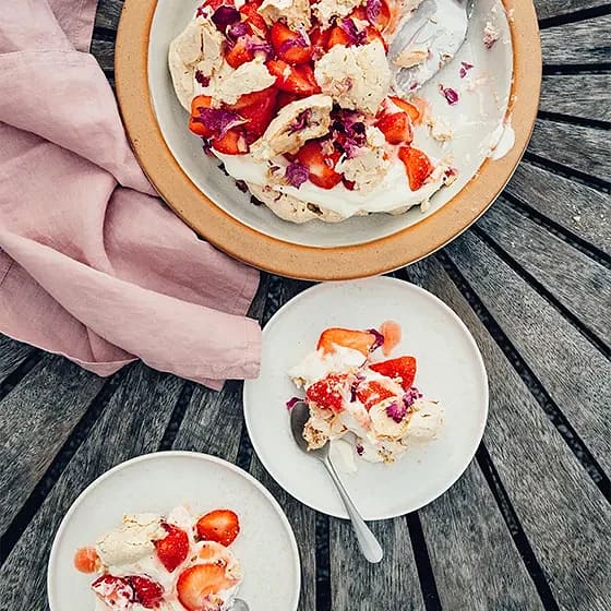 Midsommardröm - pavlova med fläderkräm och jordgubbar