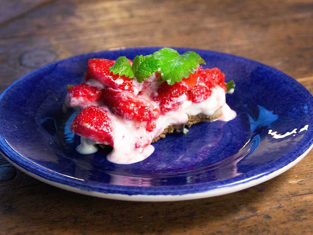 Jordgubbscheesecake med pekannötter
