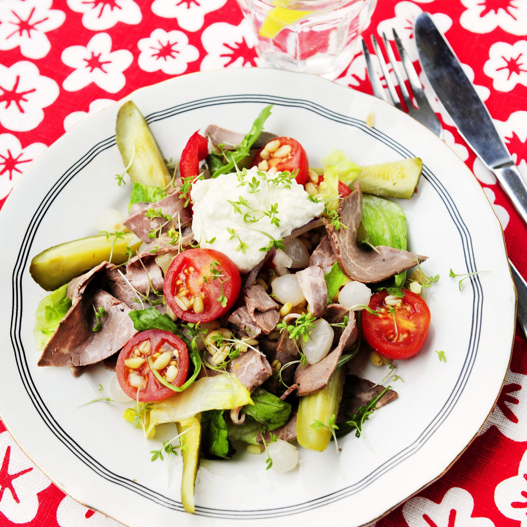 Rostbiffsallad med hel bulgur och pepparrotscrème