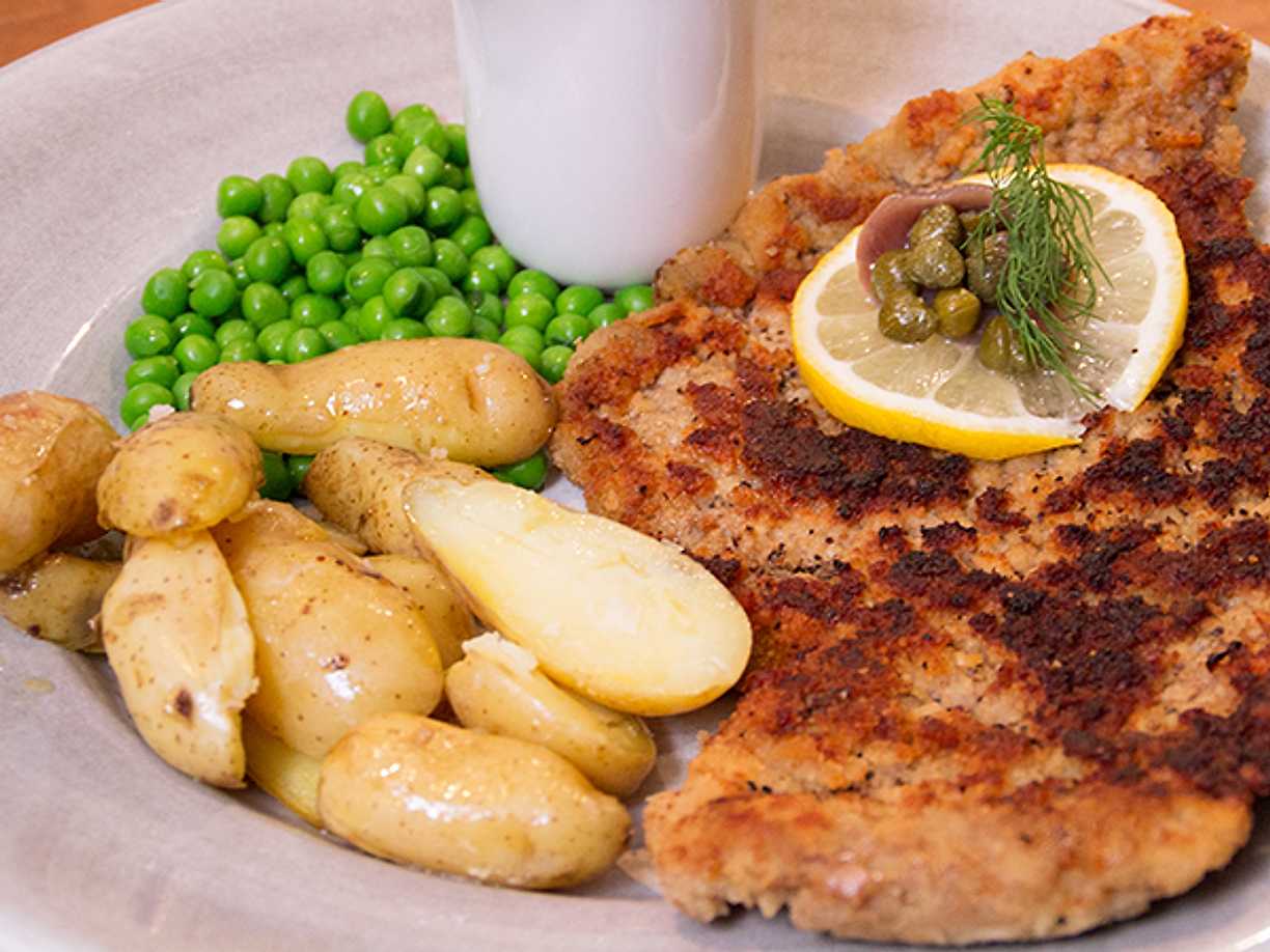Wienerschnitzel à la Ystad med syrlig persiljesås