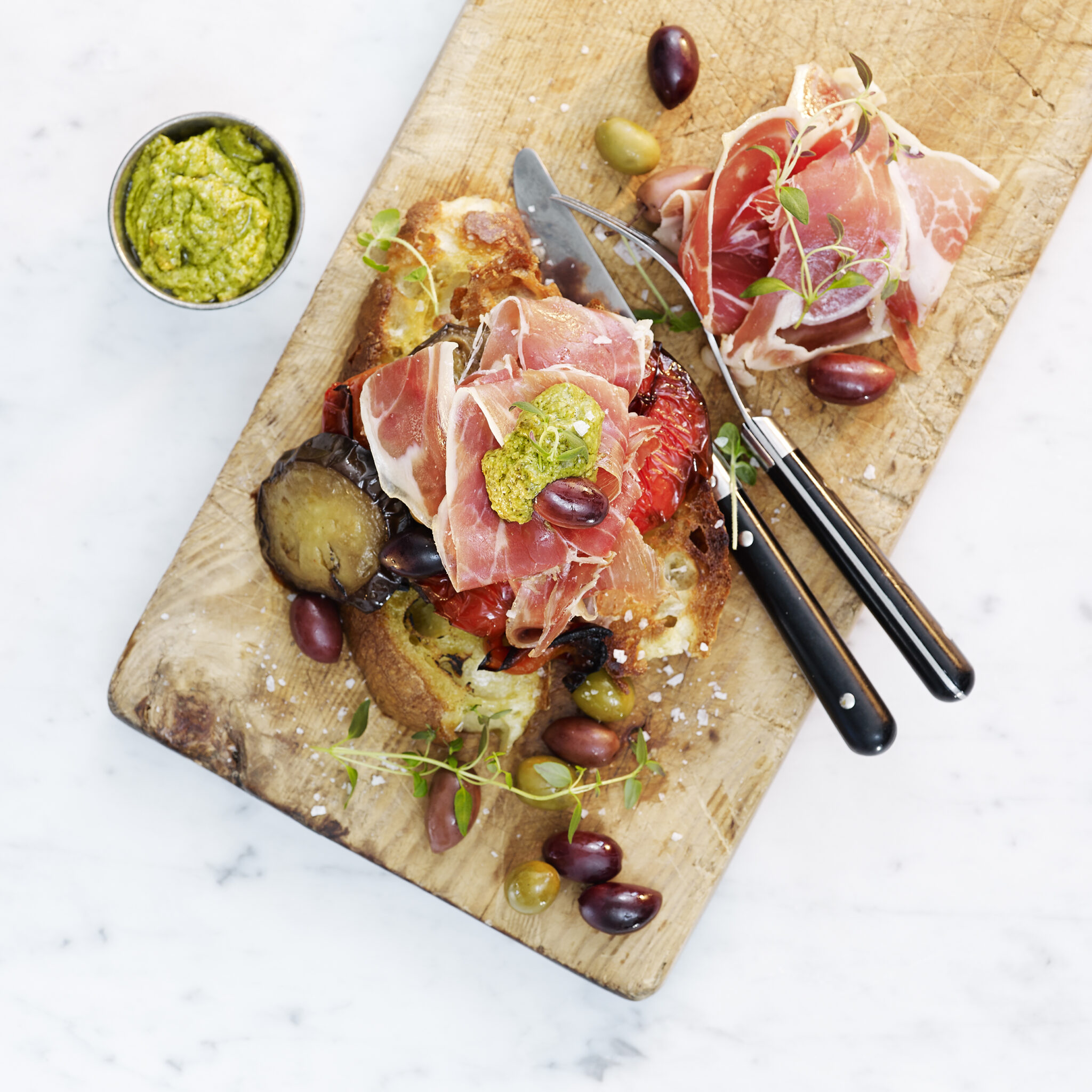 Fläskfilé tagliata med pesto och soltorkad tomatkräm