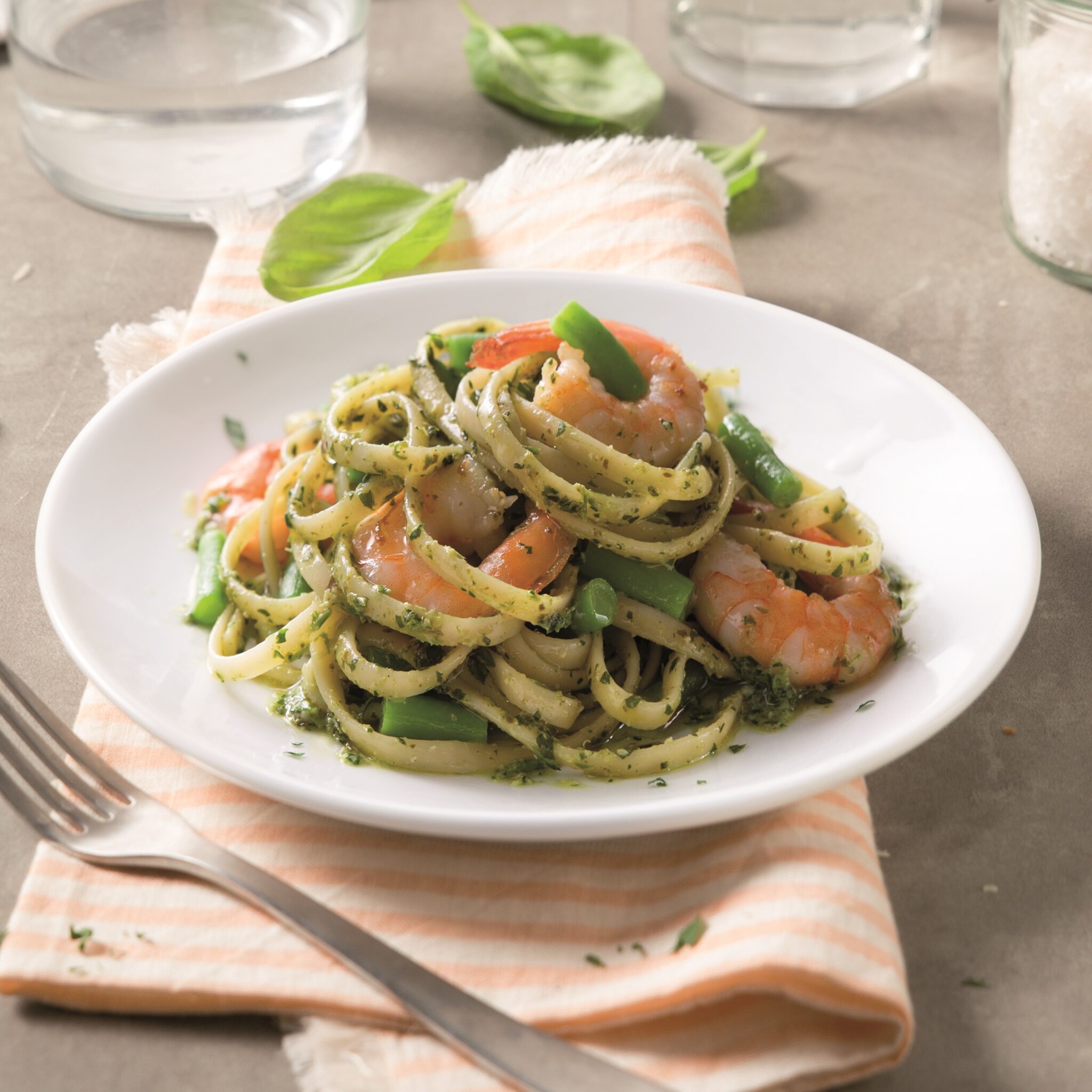 Barilla Bavette med Barilla Pesto alla Genovese, räkor och gröna bönor
