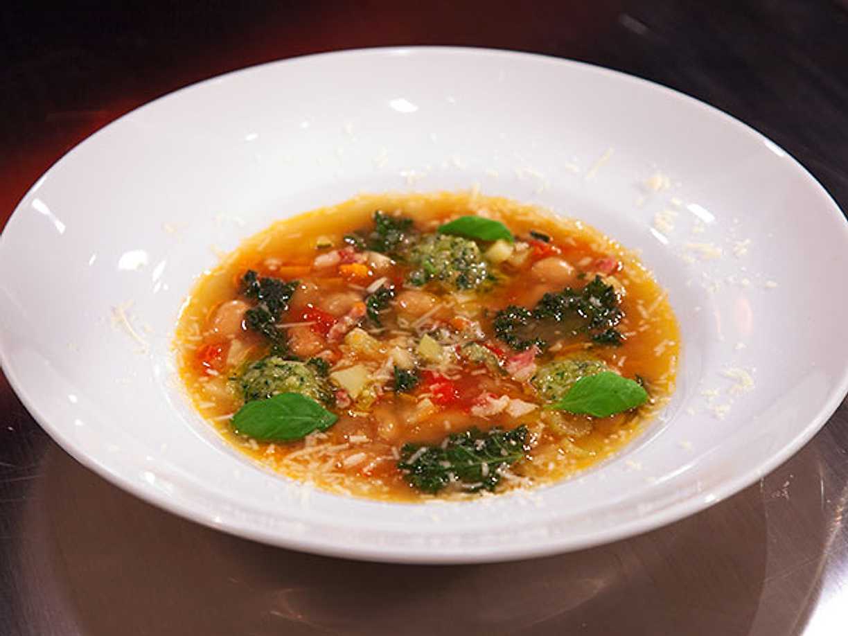 Minestrone med pancetta och pesto