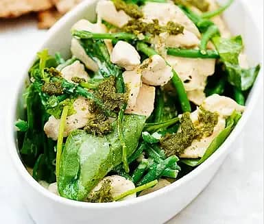Kycklingsauté med dijonssenap, haricots verts och pesto