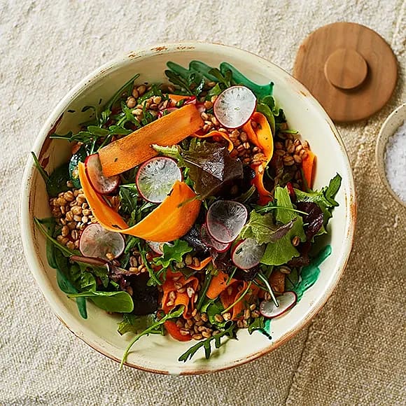 Lax med rostad färskpotatis, rödbetor och picklad gurka