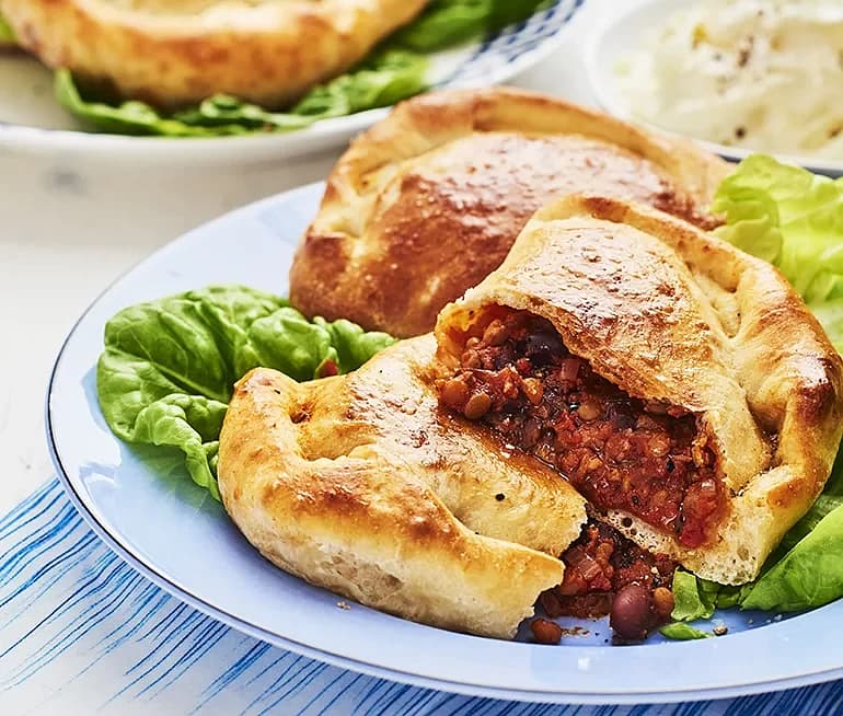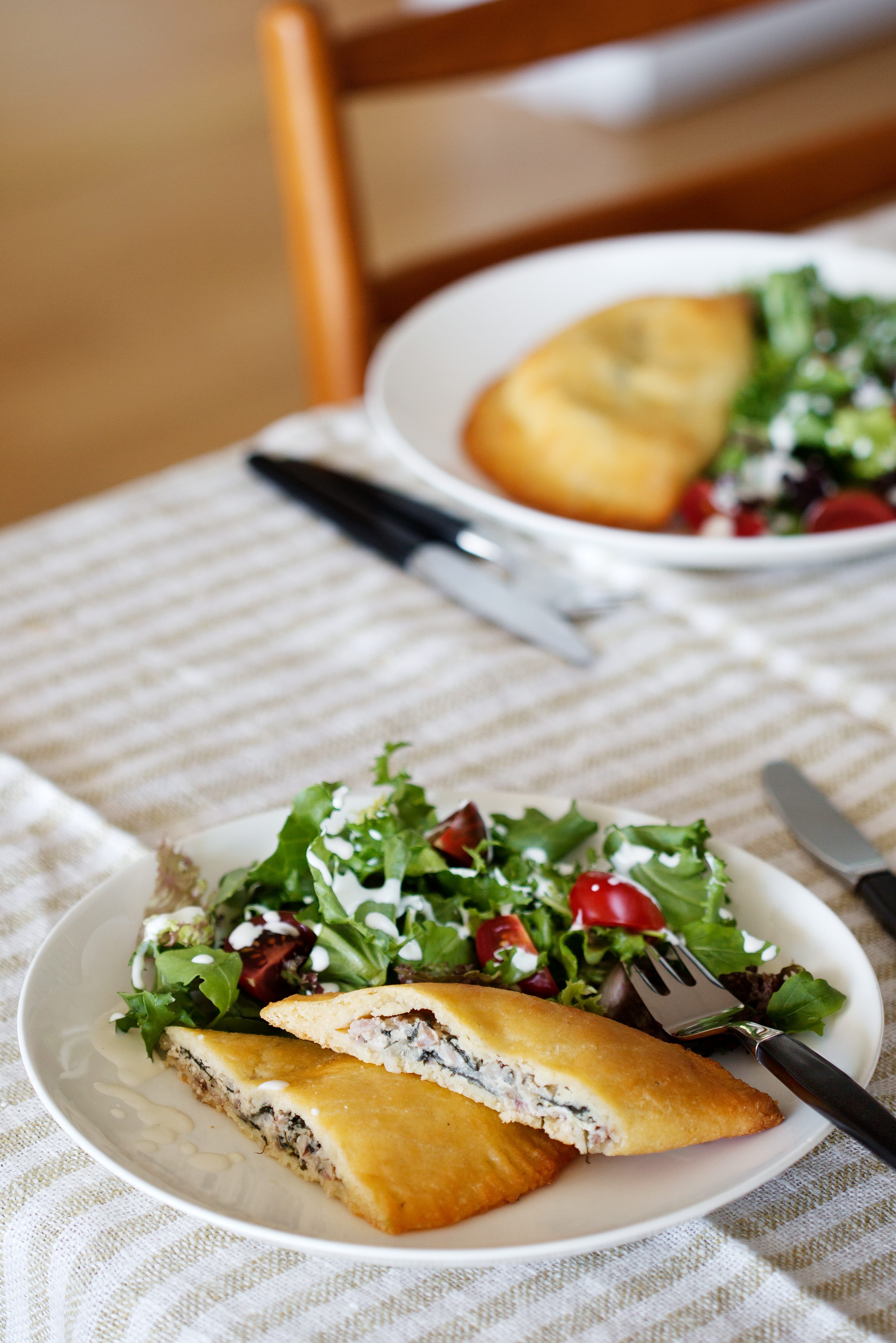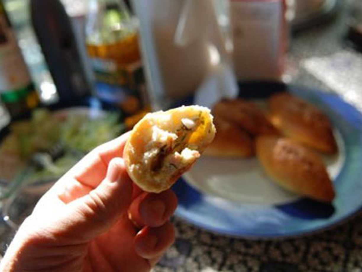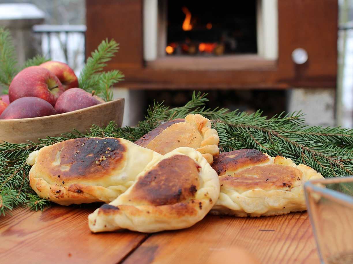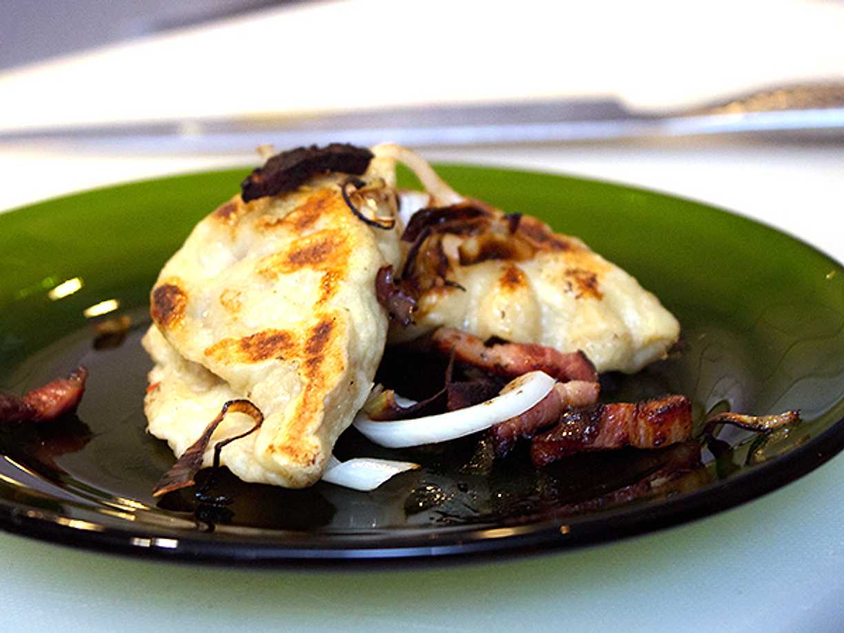 Polska kryddiga piroger med stekt sidfläsk och purjolök