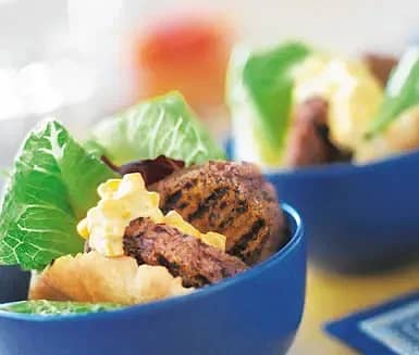 Grillade bönbiffar i pitabröd med mango