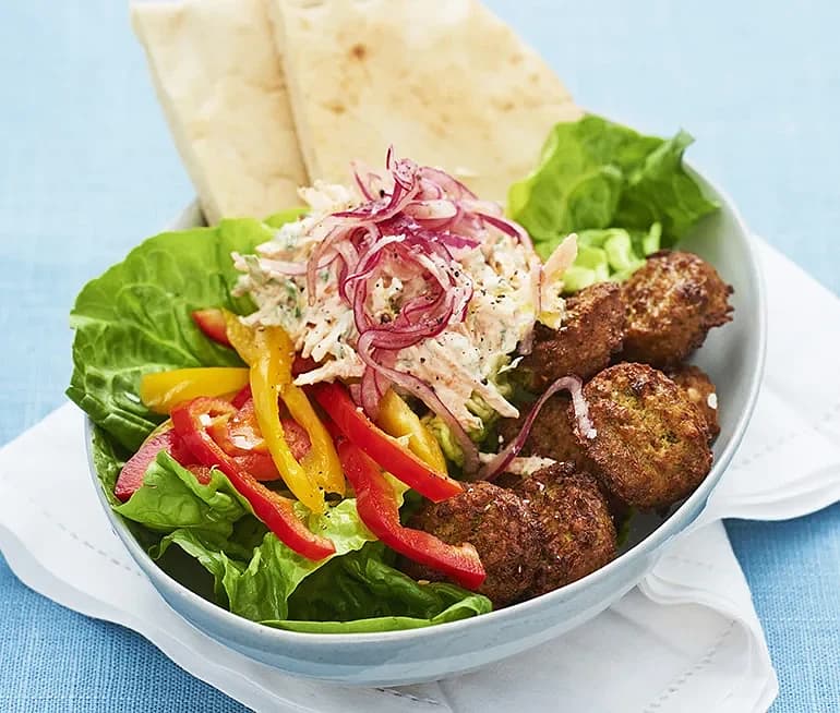 Pitabröd med köttbullar och myntayoghurt