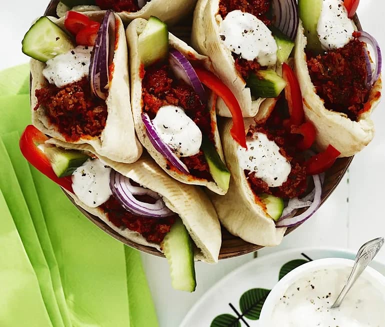 Färs i pita med gurkyoghurt