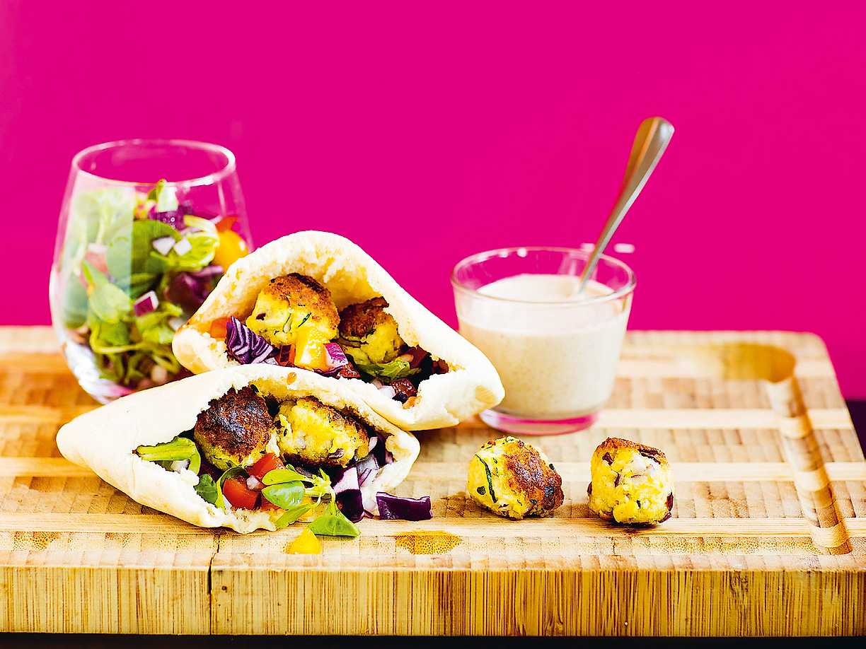 Zucchinifalafel i pitabröd