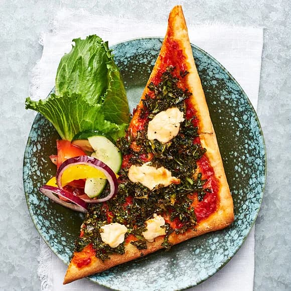 Snabb pizza med ajvar, getost och grönkål