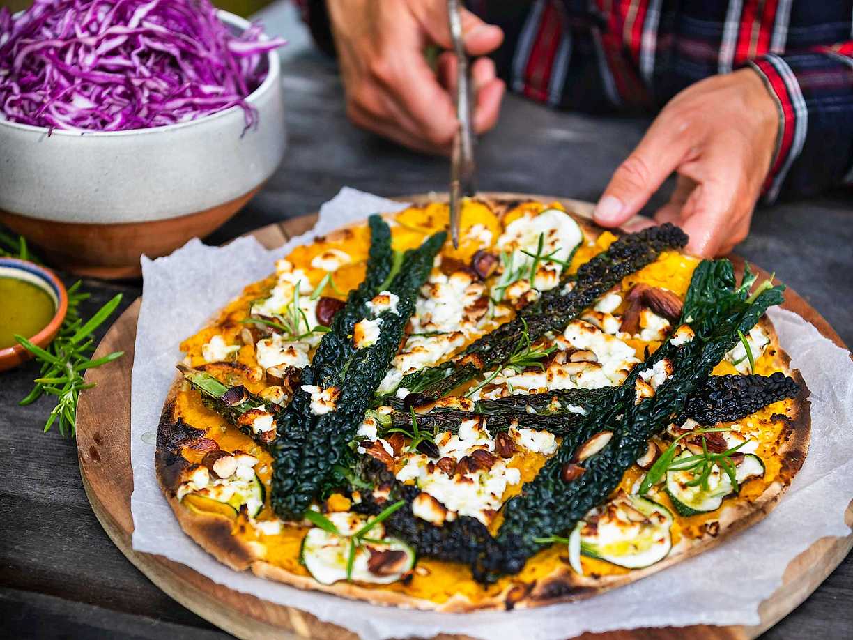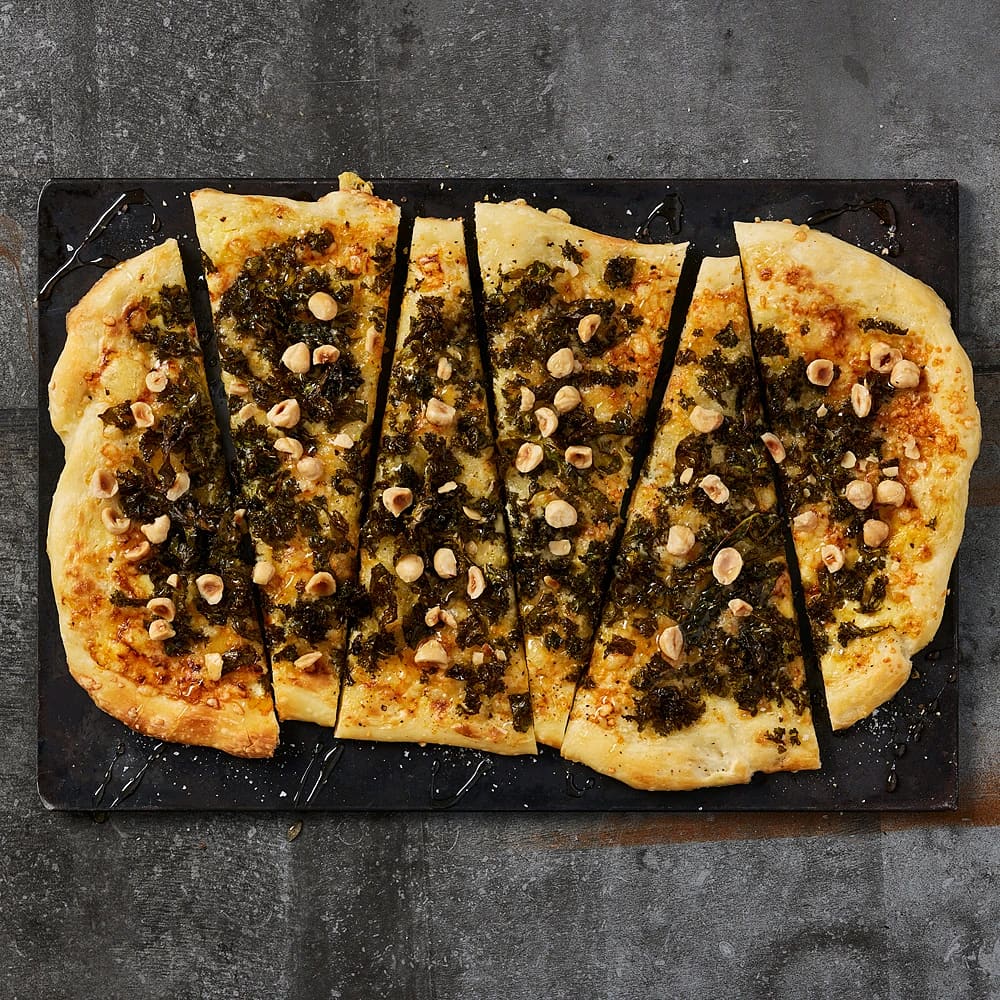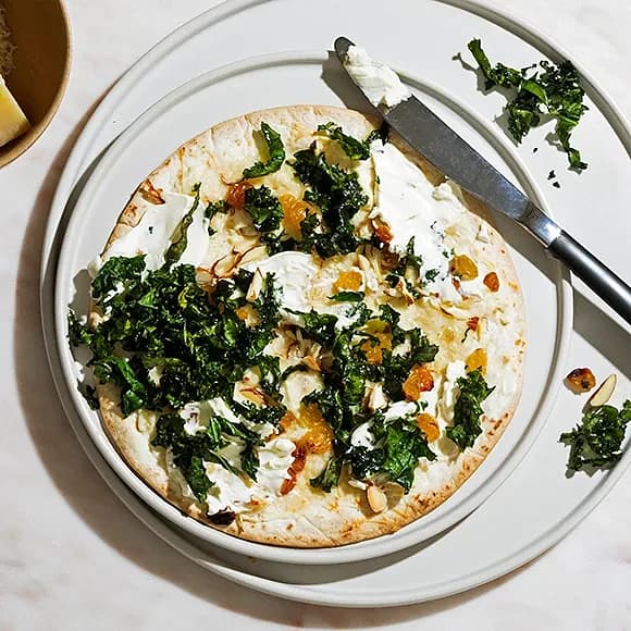Pizza bianco med grönkål och mandel