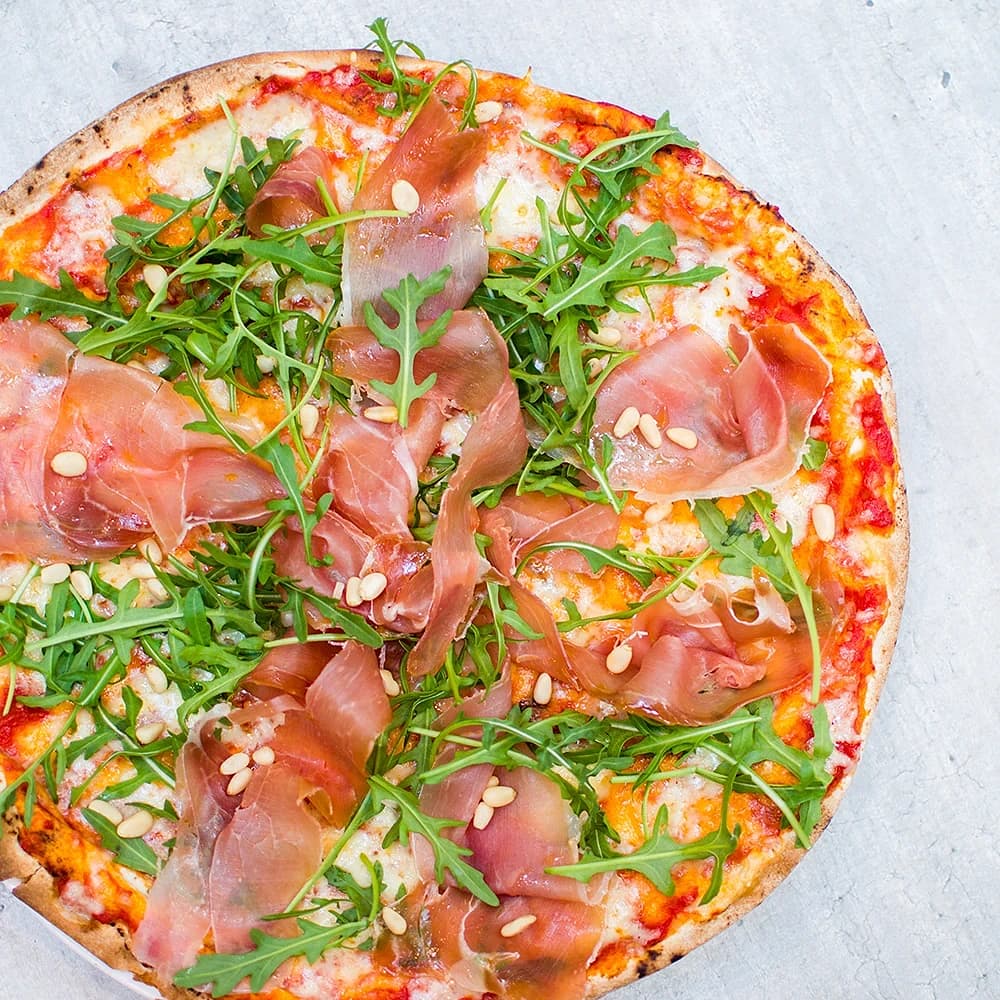 Libapizza med parmaskinka och ruccola
