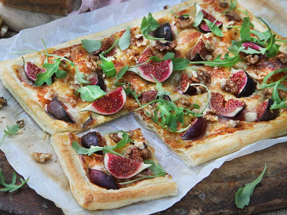 Smördegspizza med fikon, nötter och honung
