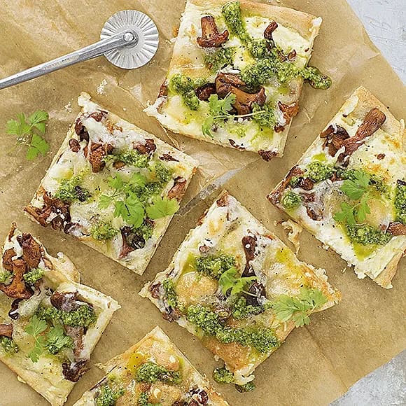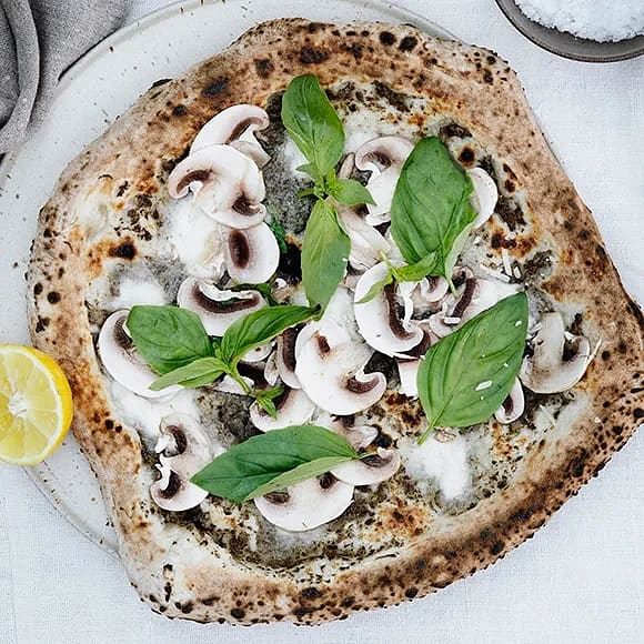 Pestopizza med mozzarella, grillad paprika och marinerad fänkål