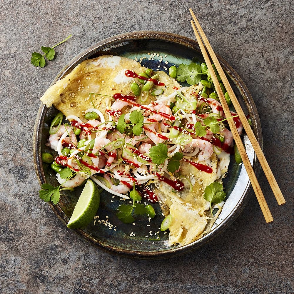 Grillad pizza med vildsvinsskinka, chèvre och sparris