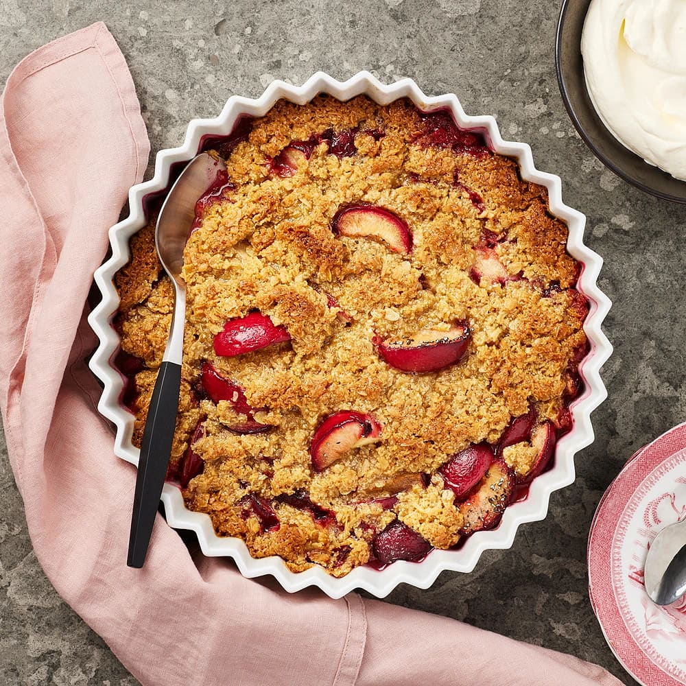 Plommonpaj med knäckig smultopping