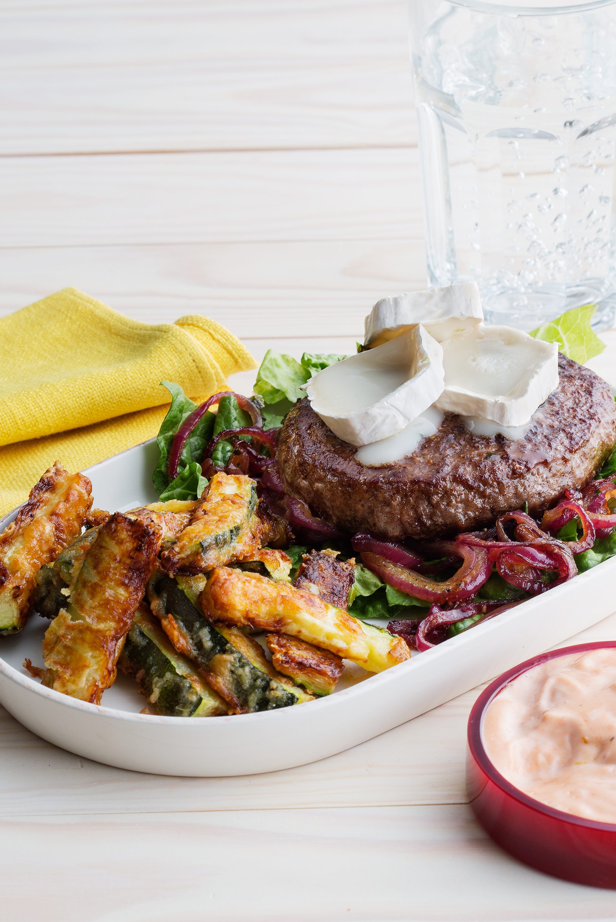 Hamburgare med getost och pommes