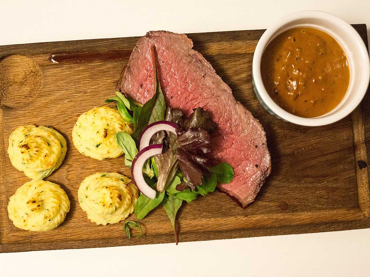 Biff med dalälvssås och pommes duchesse