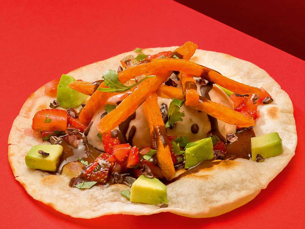 Monkey taco - glass i tortilla med sötpotatis pommes