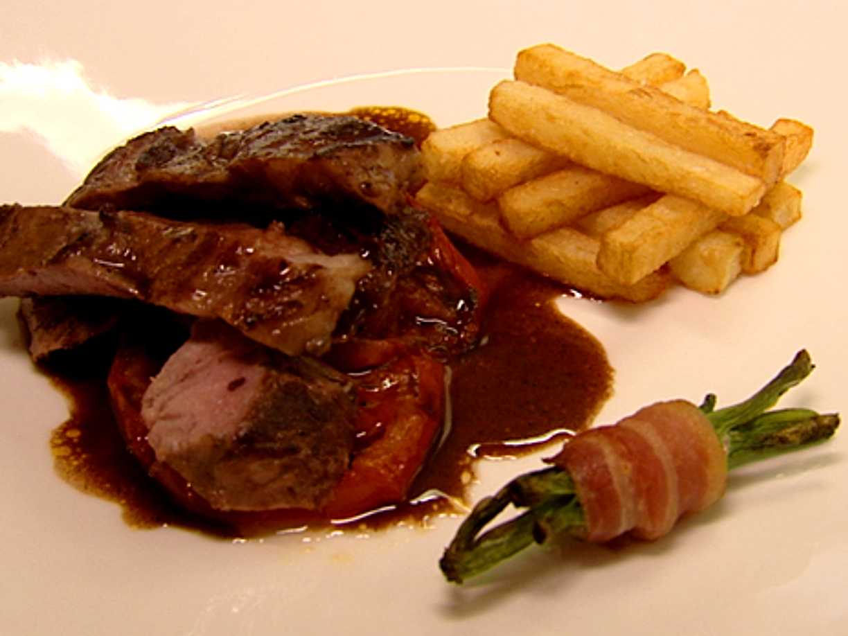 Ryggbiff med pommes och rödvinssås