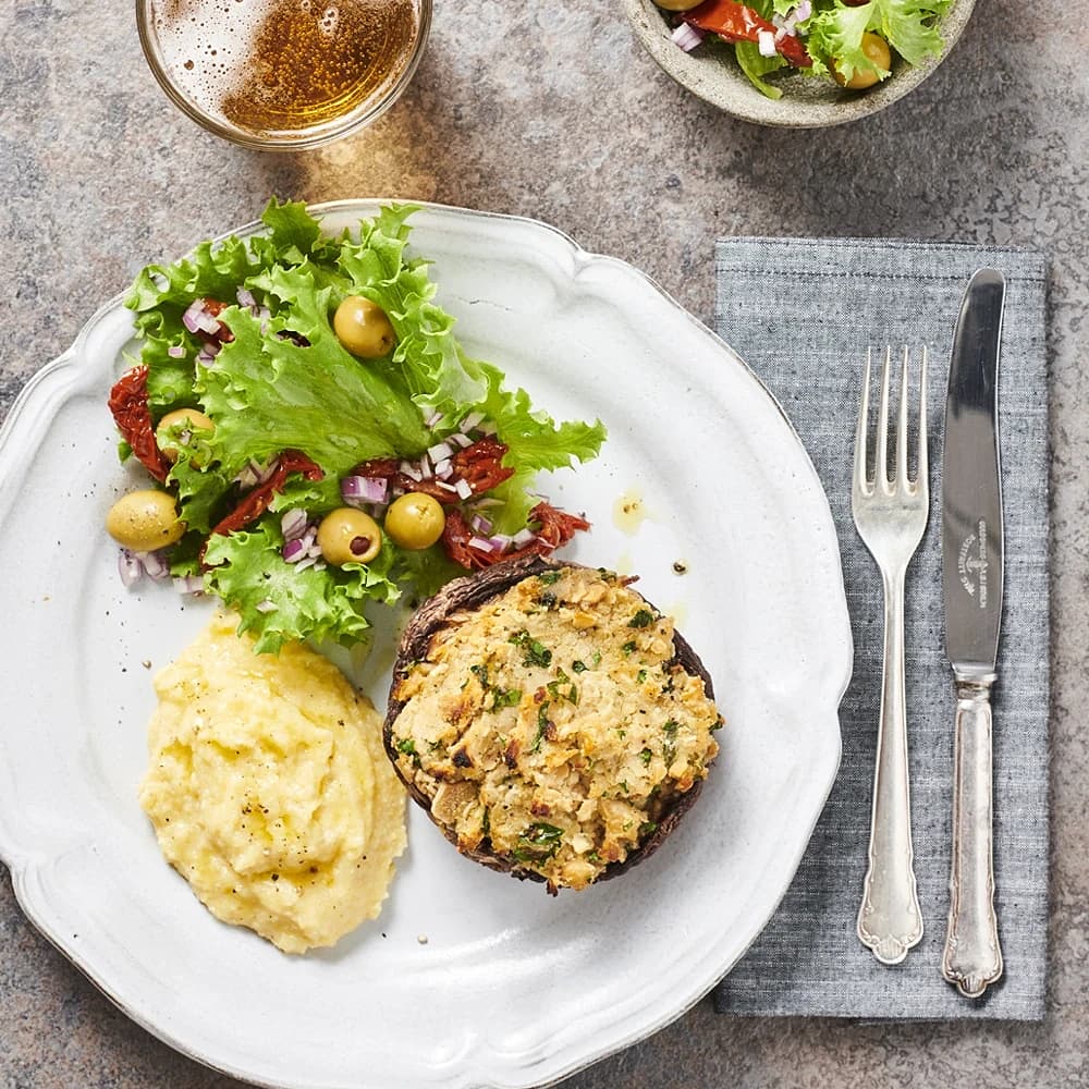Mandelbakad portabello med krämig polenta