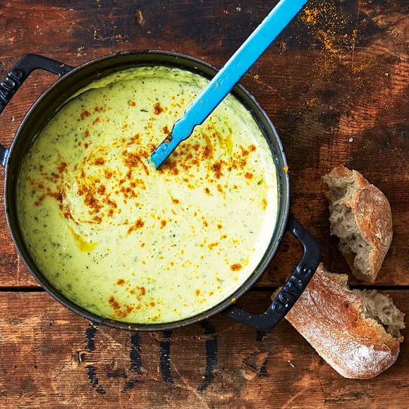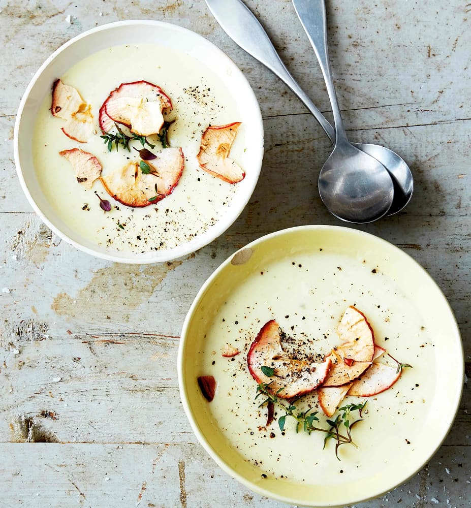 Potatis- och jordärtskockssoppa med äppelkrisp
