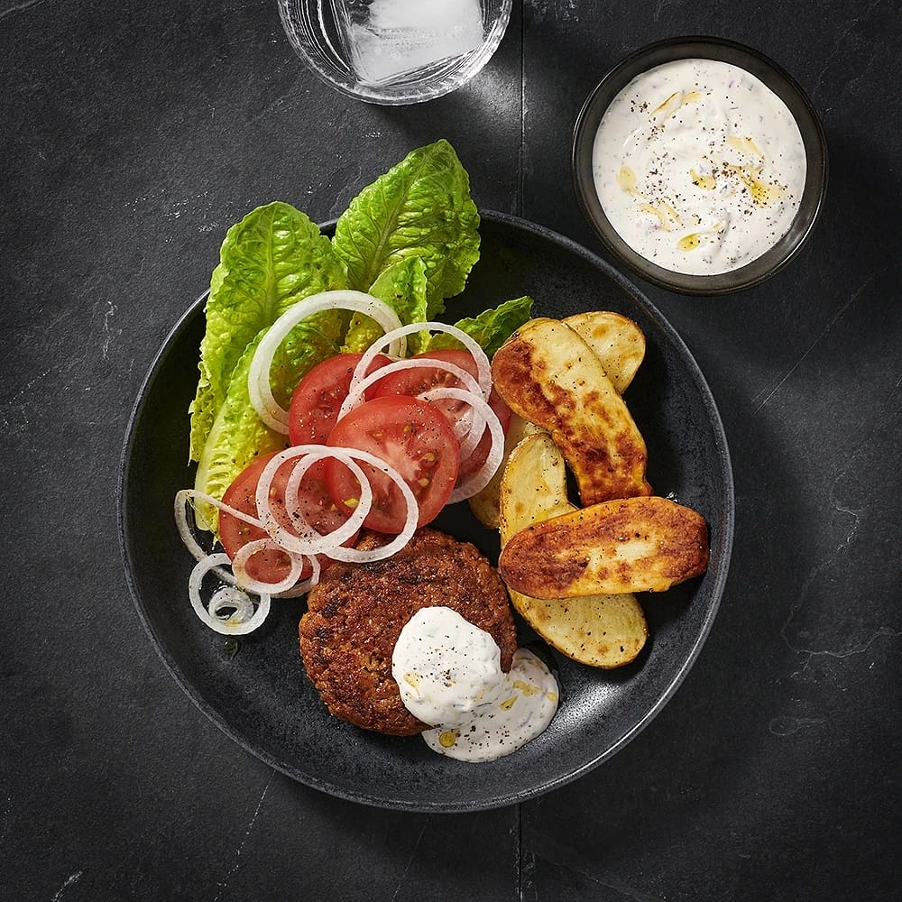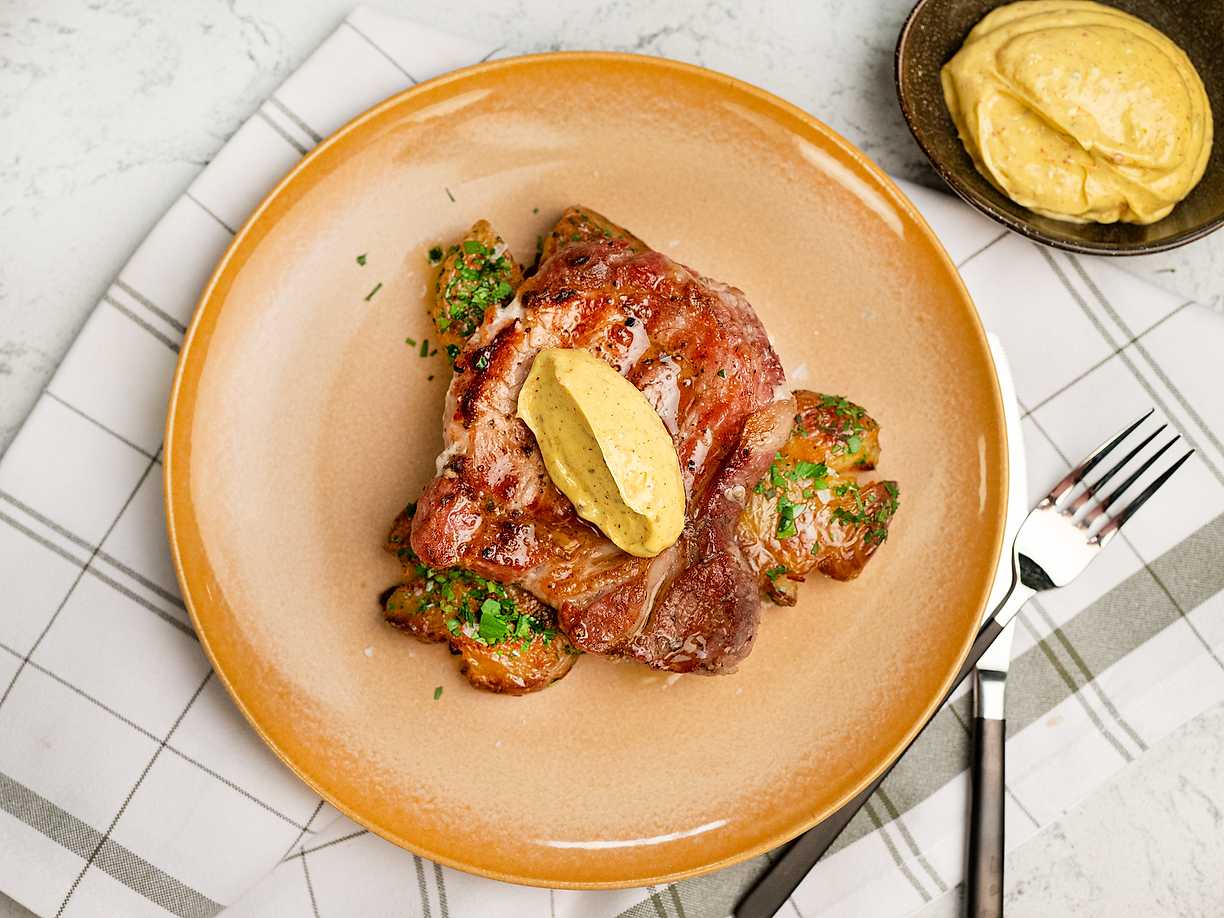 Tagliata med rostad potatis, basilikasås och vitlöksfraiche