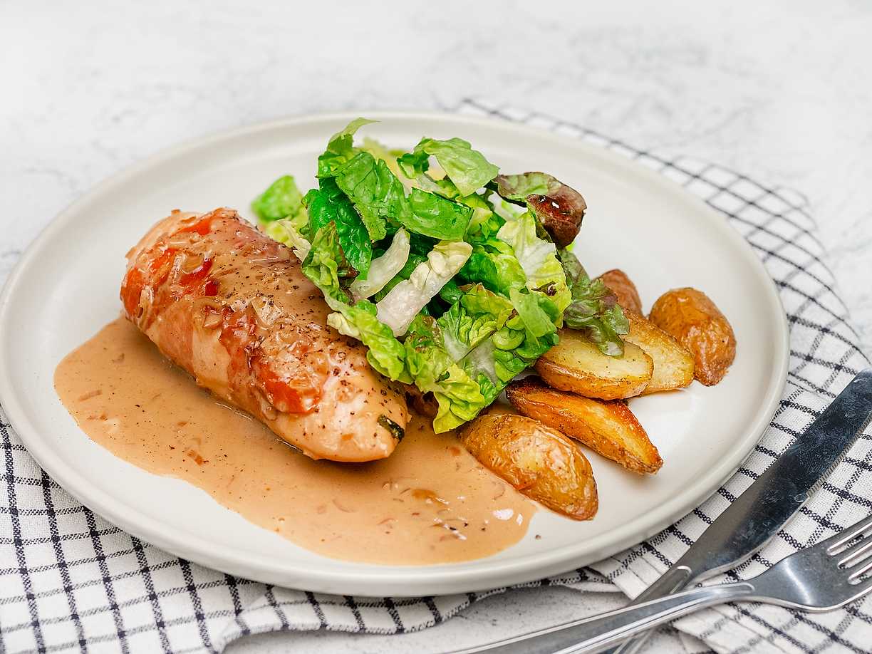 Prosciuttolindad kycklingfilé med ugnsrostad potatis