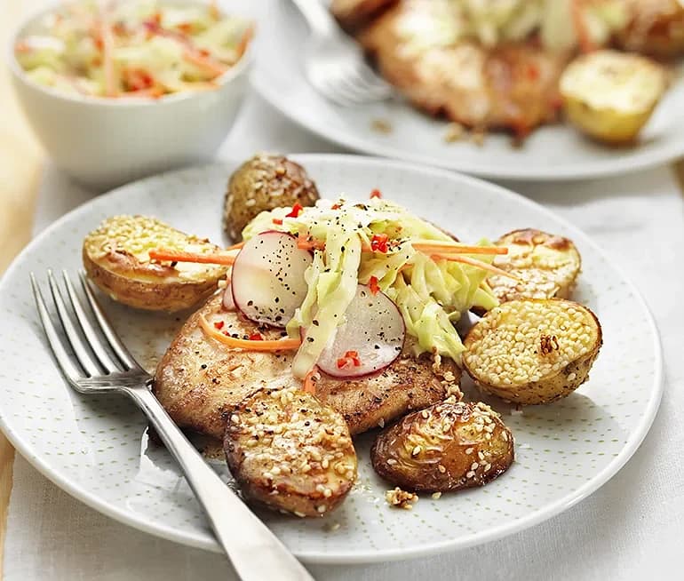 Halstrad lättgravad torsk med smaksatt stekt potatis