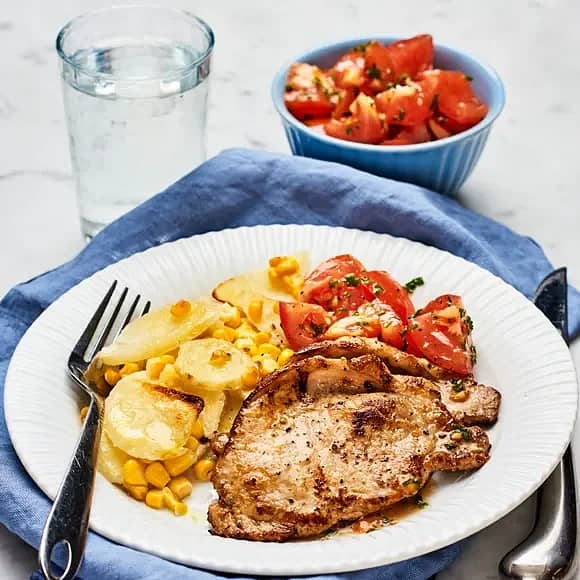 Grillad fläskkotlett med café de paris-smör och rostad potatis
