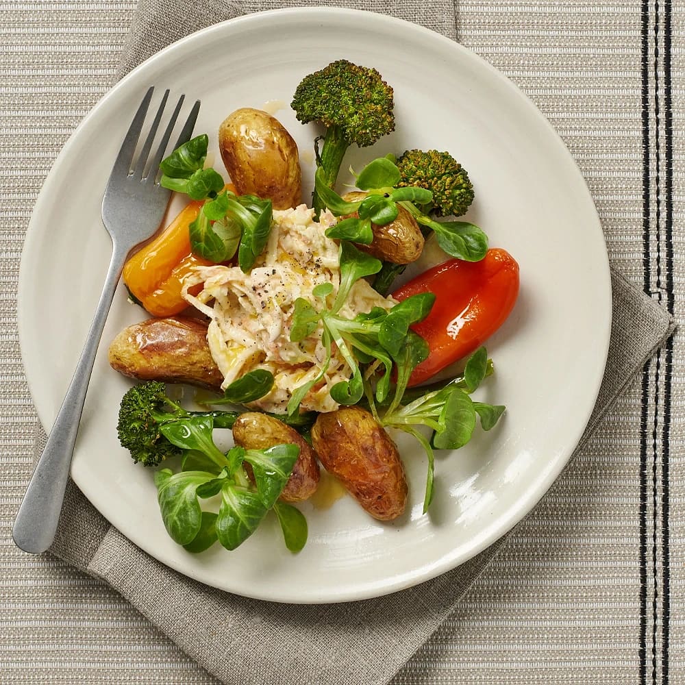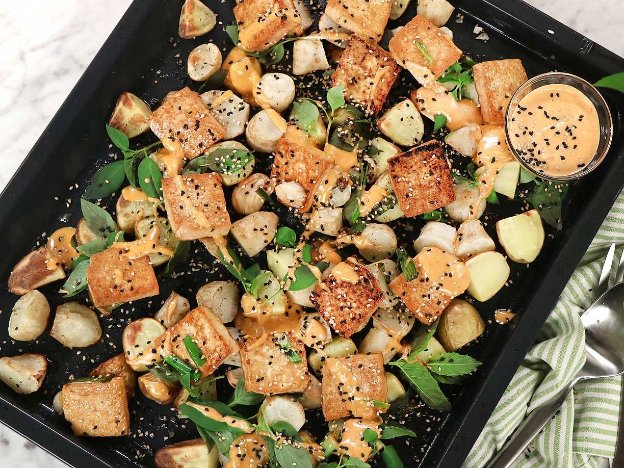 Rostad jordärtskocka och potatis med chilimajonnäs