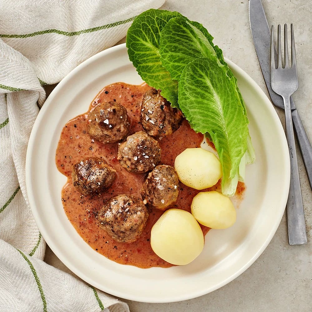Njurtapp med festlig potatis, haricot verts och kantarellsås
