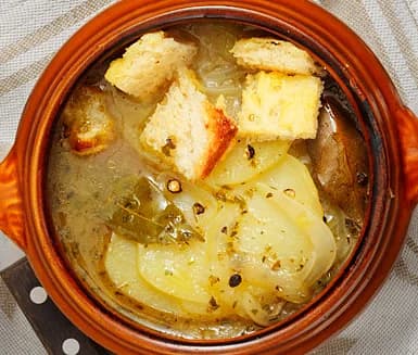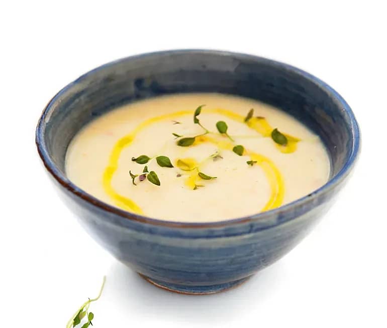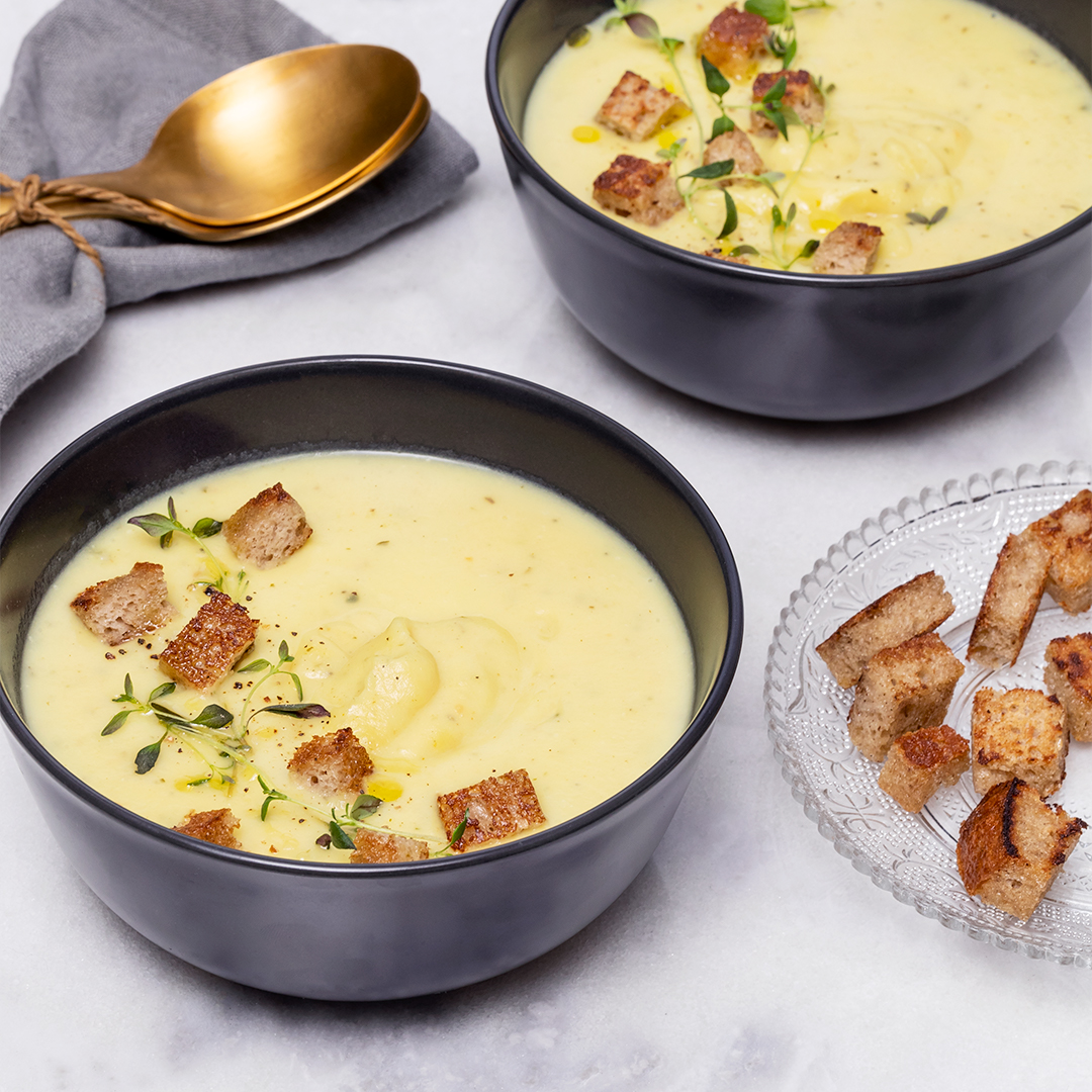 Potatis- och purjolökssoppa med tunnbrödrulle