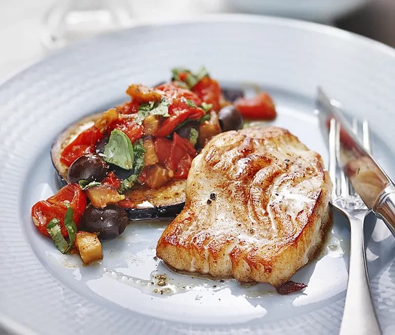 Bräserad havskatt med potatis, rödbetor, citron och kapris