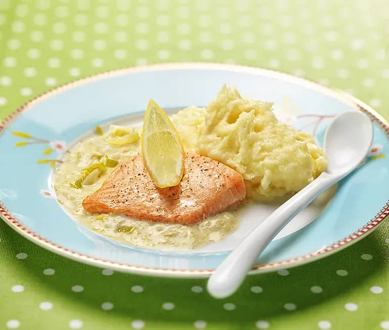 Lax med potatis- och palsternackspuré och syrlig purjosås